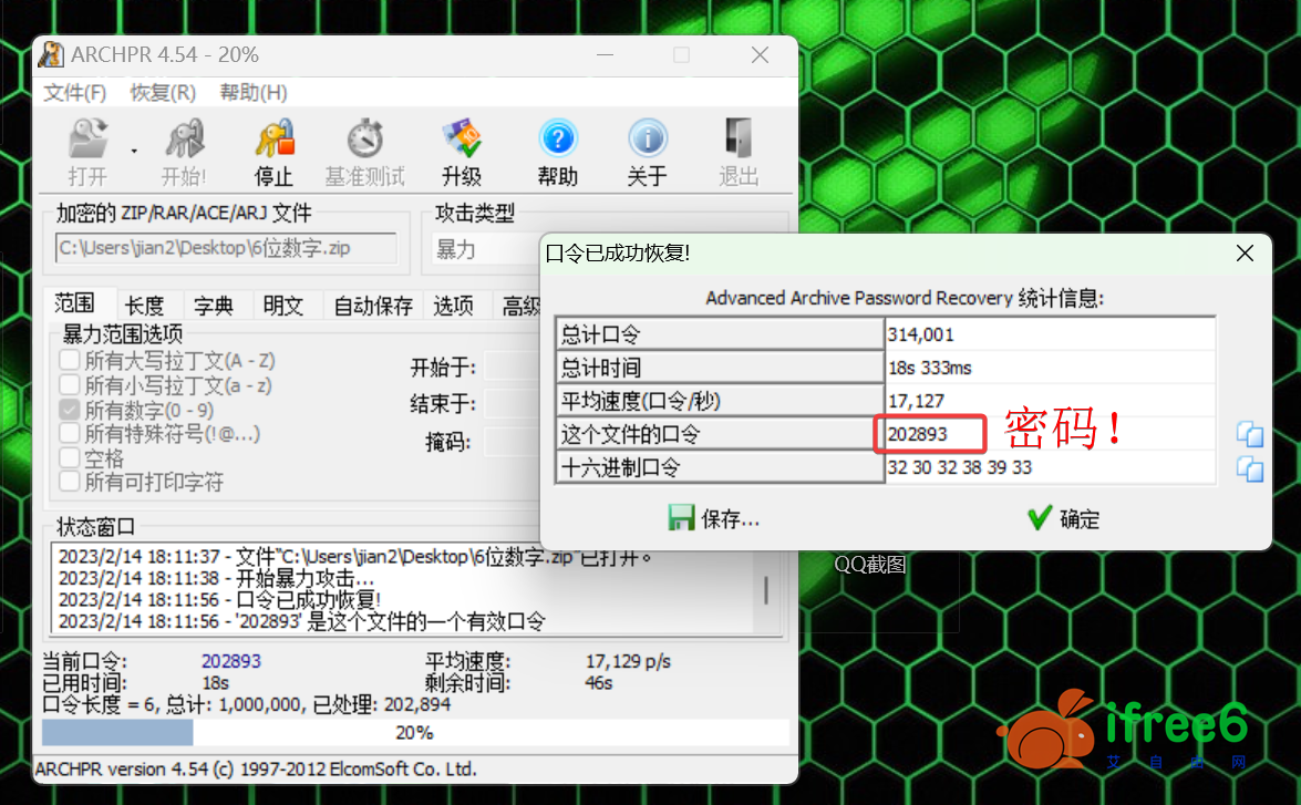Advanced RAR Password Recovery 是一款功能强大的 RAR/WinRAR密码破解工具,支持所有版本的ZIP、PKZIP、WinZIP、RAR、ARJ、ACE等压缩文件的密码恢复,支持超过4GB的解压文件和自解压文件,支持AES加密文件,可以充分利用所有已知的漏洞和缺陷进行各种压缩算法进行快速恢复。亲测:破解6位纯数字的密码只用了17秒(破解速度与电脑CPU性能有关,处理器越好,速度越快)。
