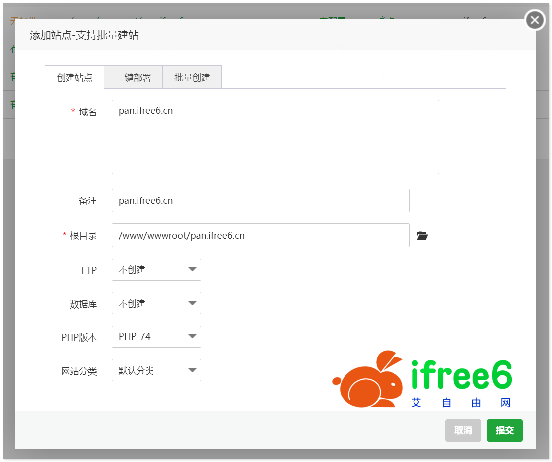1.登录宝塔面板,创建网站(至于怎么以部署宝塔面板,请询问搜索引擎)