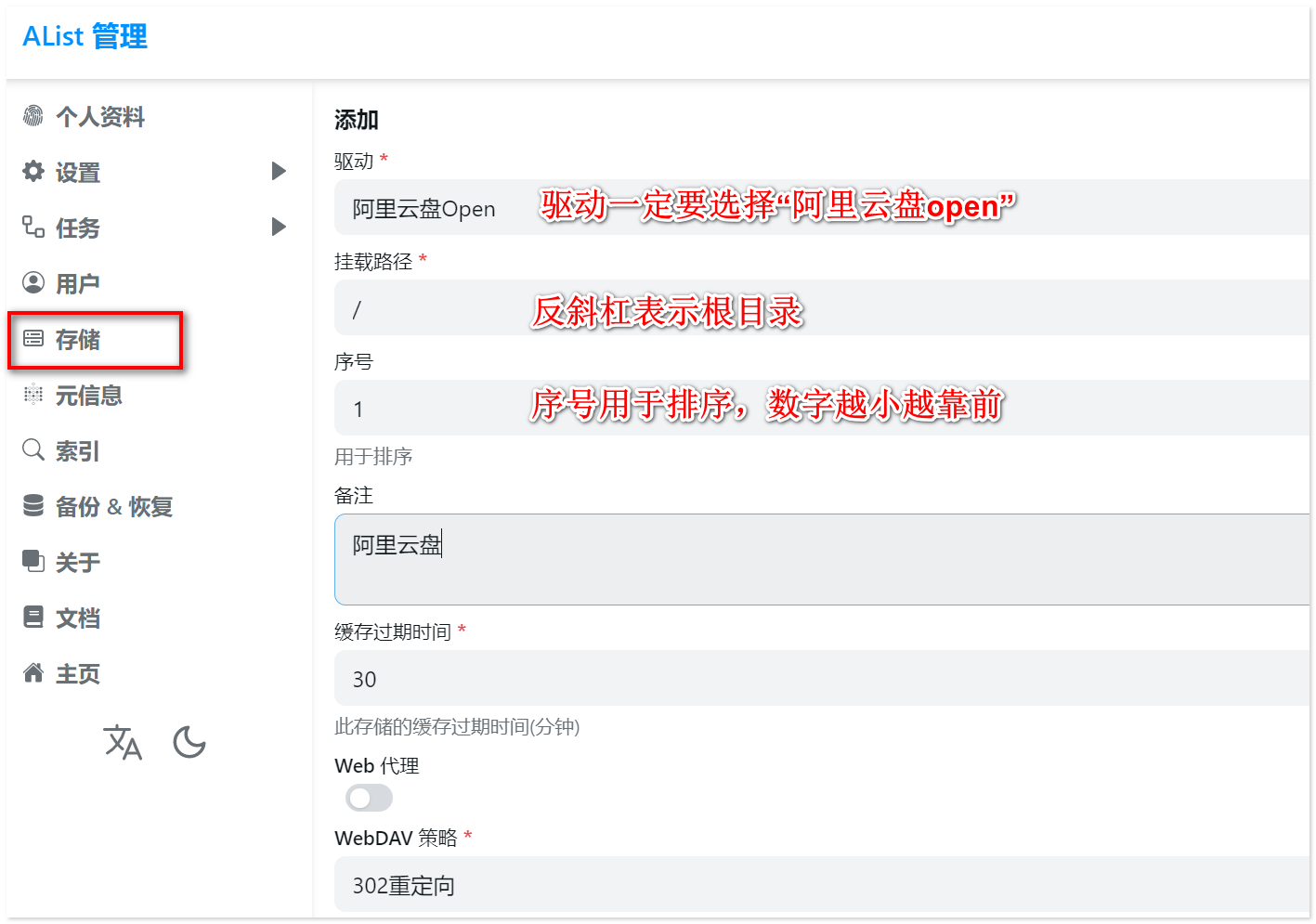 如果要挂载阿里云盘,请务必将驱动换成“阿里云盘open”,否则有可能封号,其它网盘不受影响。