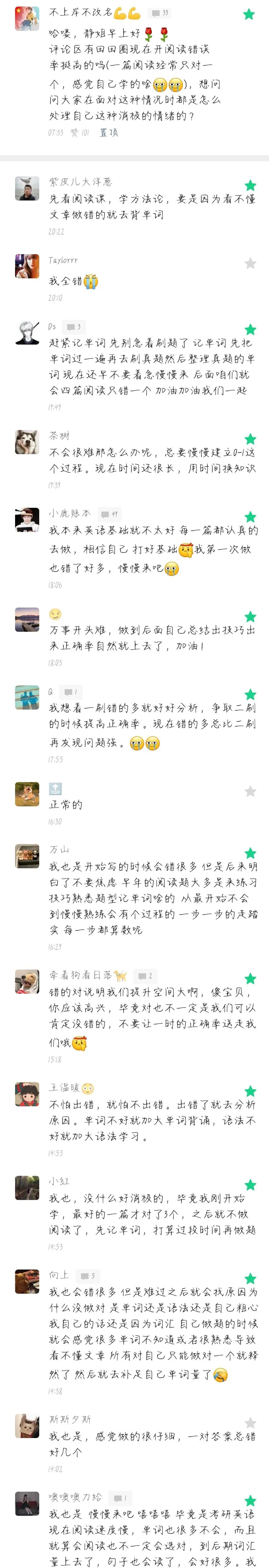 4月已经过半啦,很多同学都已经开始着手进入真题了,刚接触真题,大部分同学肯定会觉得无从下手,或者感觉自己错误率很高,从而有挫败感,有同学问在面对这种情况的时候,如何处理这种消极的情绪,我们的田田圈都给出了自己的答案,有同样问题的同学也来看看吧。