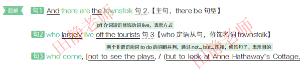 【句3】定语从句:who come, not to see the plays, but to look at Anne Hathaway’s Cottage, Shakespeare’s birthplace and the other sights.