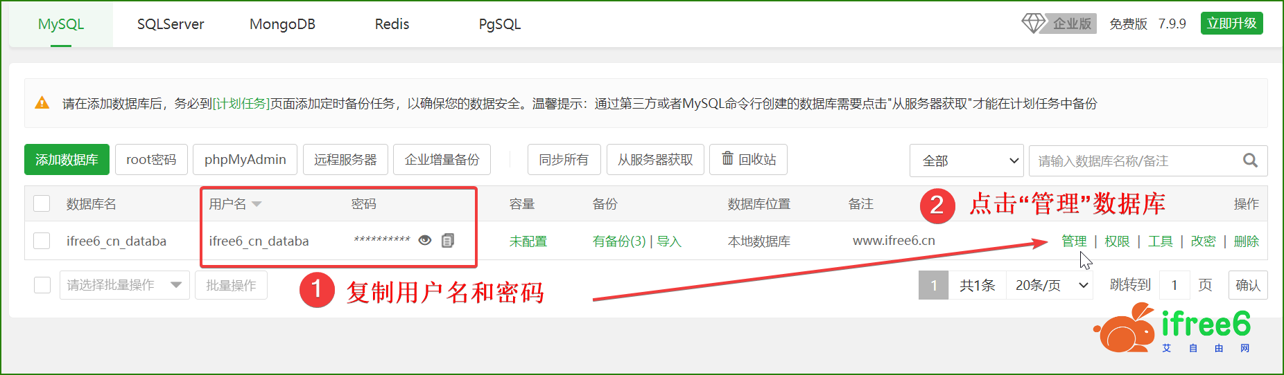 警告:如果您是新手,建议操作之前,一定要先备份好数据库(宝塔面板可以备份),以防不测。