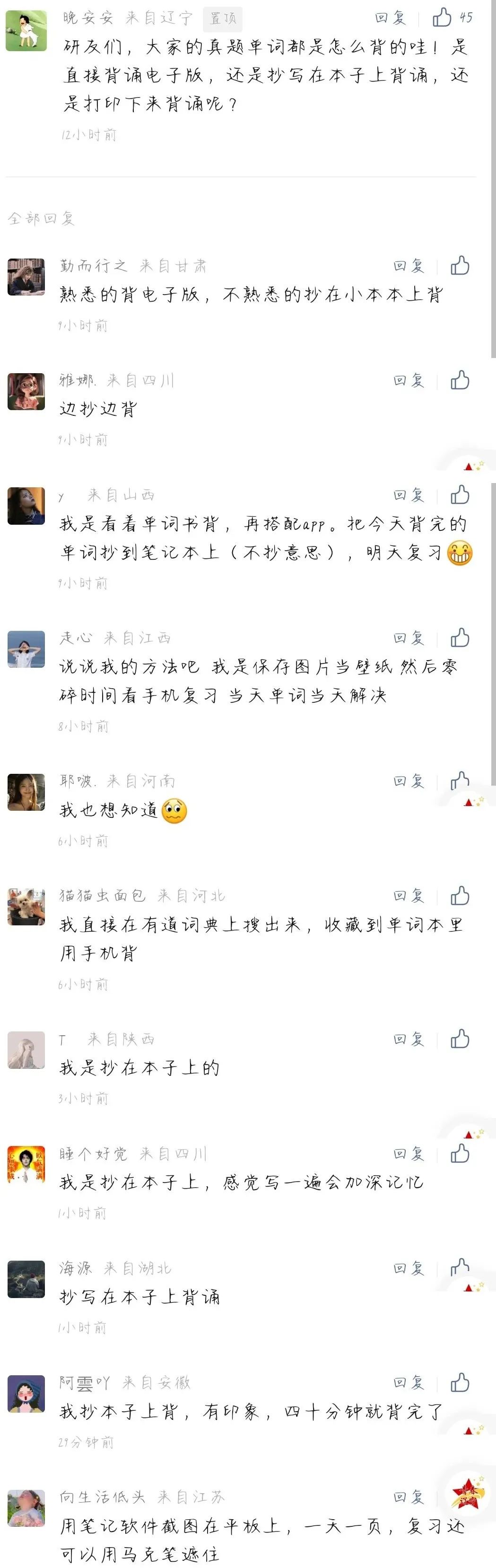 有人在评论区问:【大家的真题单词都是怎么背的?】,也有人问:【考英语二或英语一的有没有必要背对方的单词或者句子?】