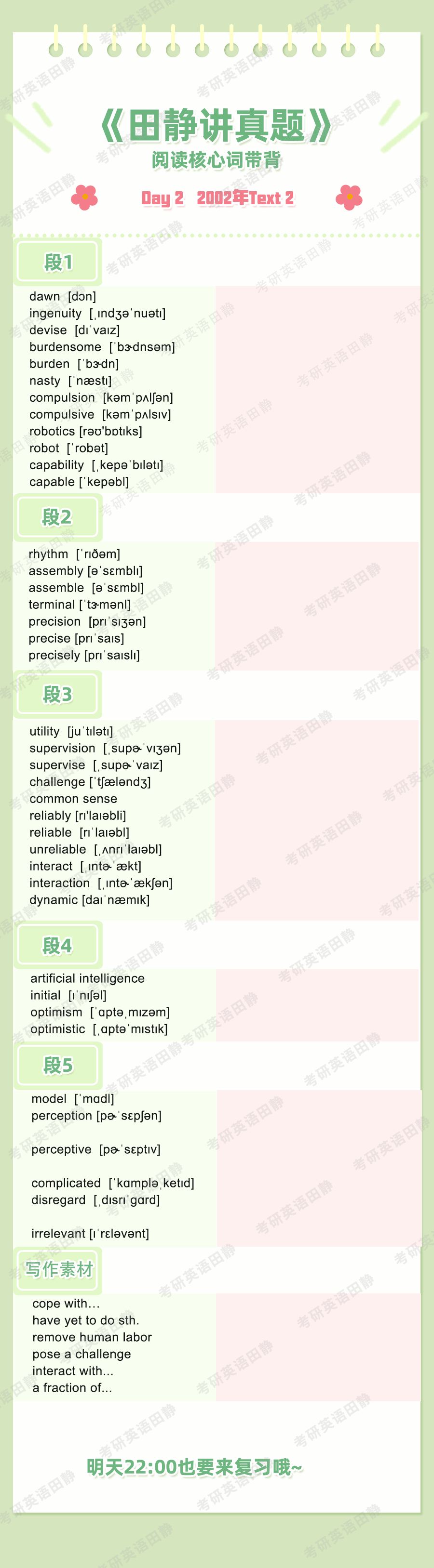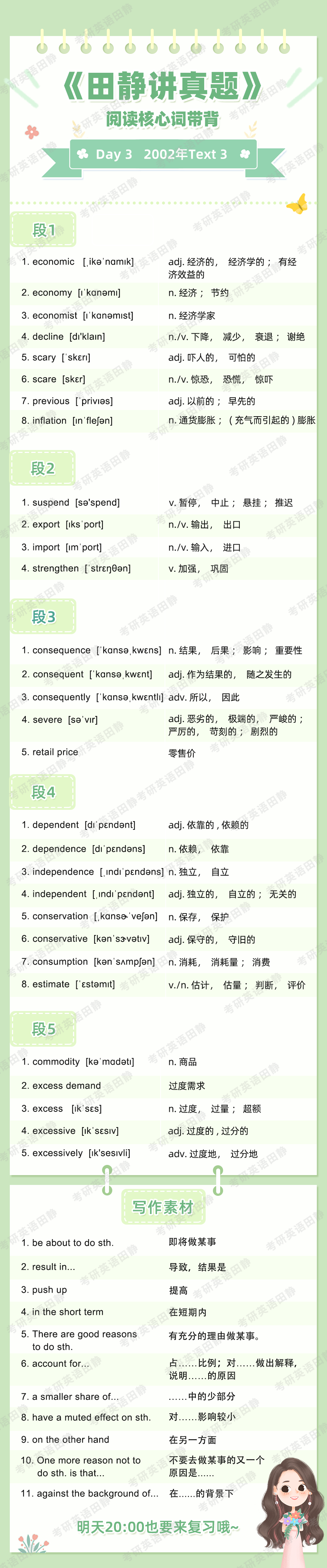 ⚠️另外静姐的建议是,早背诵晚复习,大家可以在早上背完晚上在微博检查复盘一遍,有同学没有微博的话也可以在第二天早上学习新的内容之前先复盘前一天的单词。