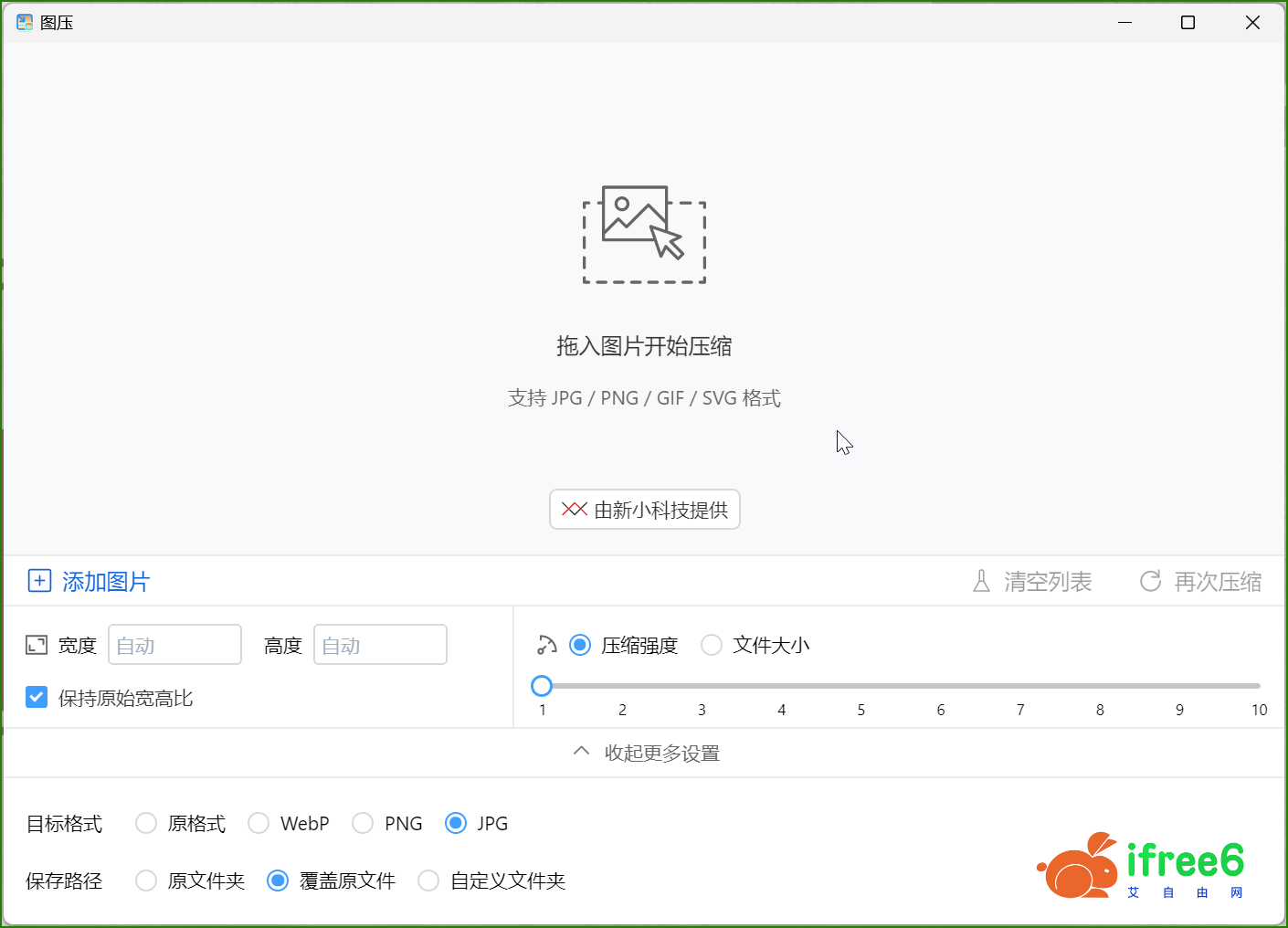 支持多种格式:支持 JPG/PNG/GIF/SVG 等多种图片格式进行压缩。