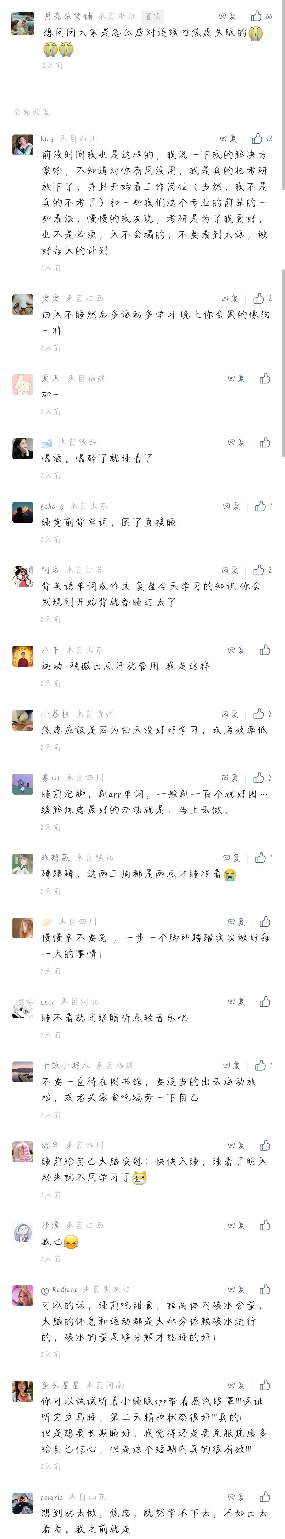 本周的田田圈互助问答是:如何应对连续性焦虑失眠?
