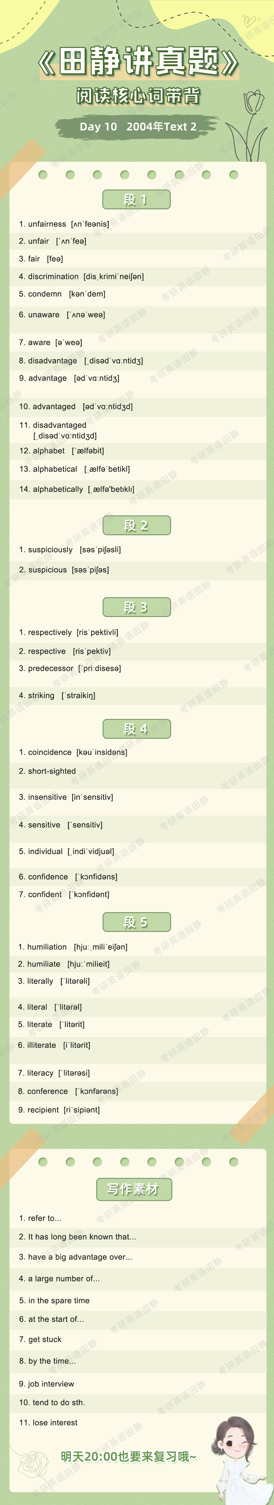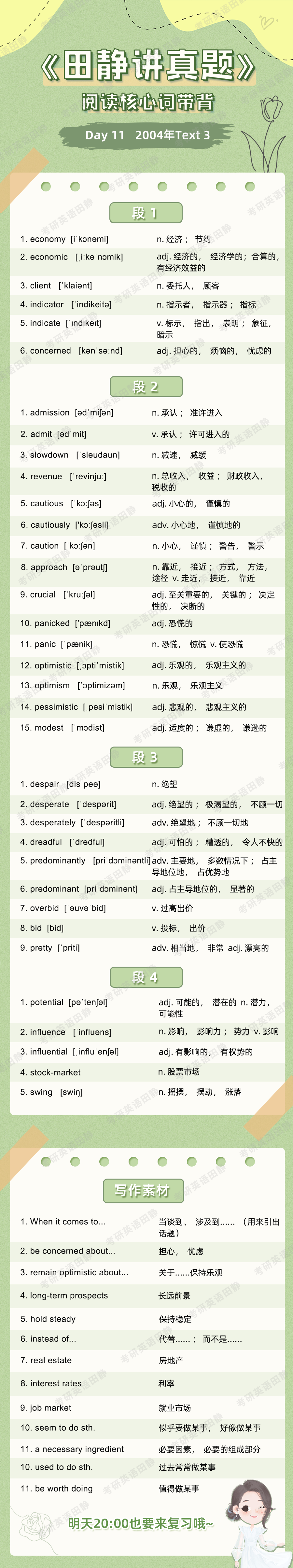 Aloha,大家好,我是大家的考研英语老师田静。核心词带背的第11天,又是新的一周啦,大家上周的学习成果怎么样?