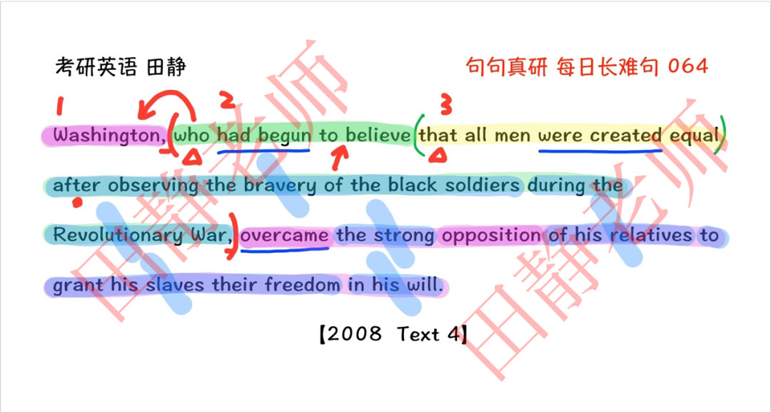 ⚠️注意:从意思上判断,介词短语after observing the bravery of the black soldiers during the Revolutionary War是跟着who从句的,而不是跟着that从句的。