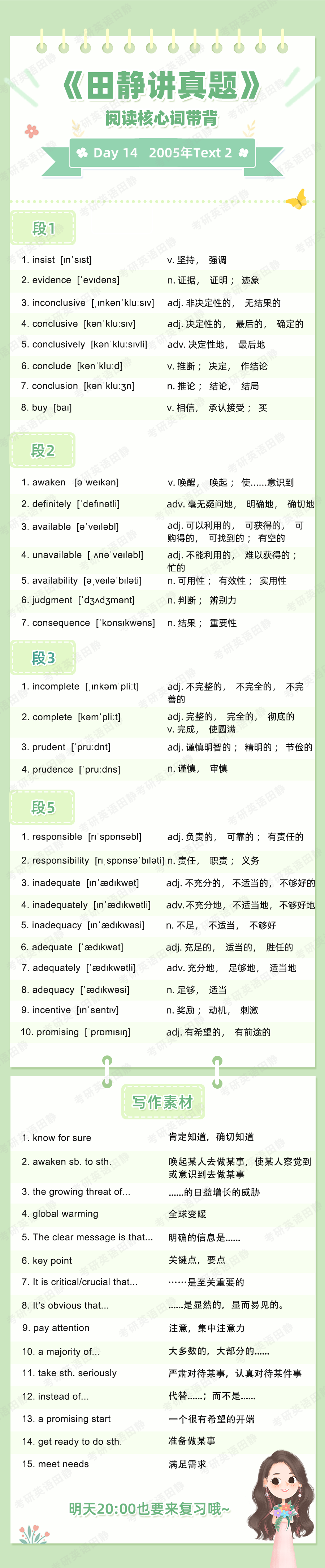 Aloha,大家好,我是大家的考研英语老师田静。核心词带背的第14天,分享一则研0的近况吧