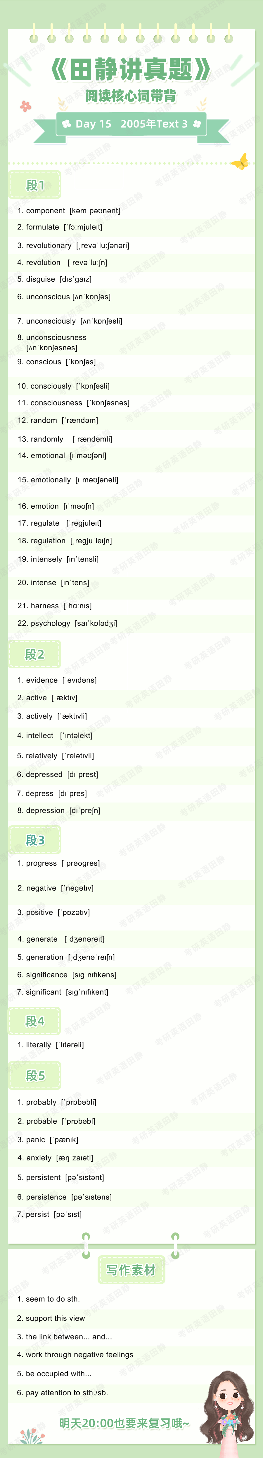 先复盘再学习,看看昨天的核心词带背都记住了吗,跟着静姐一起自测一下吧,没记住的单词记得标记出来📌,和今天新的单词一起背诵呀~