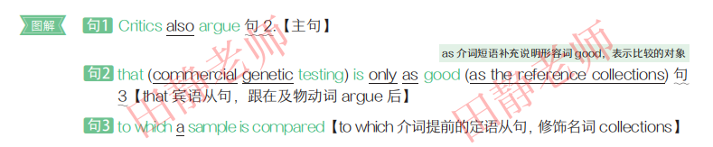 【句2】宾语从句:that commercial genetic testing is only as good as the reference collections