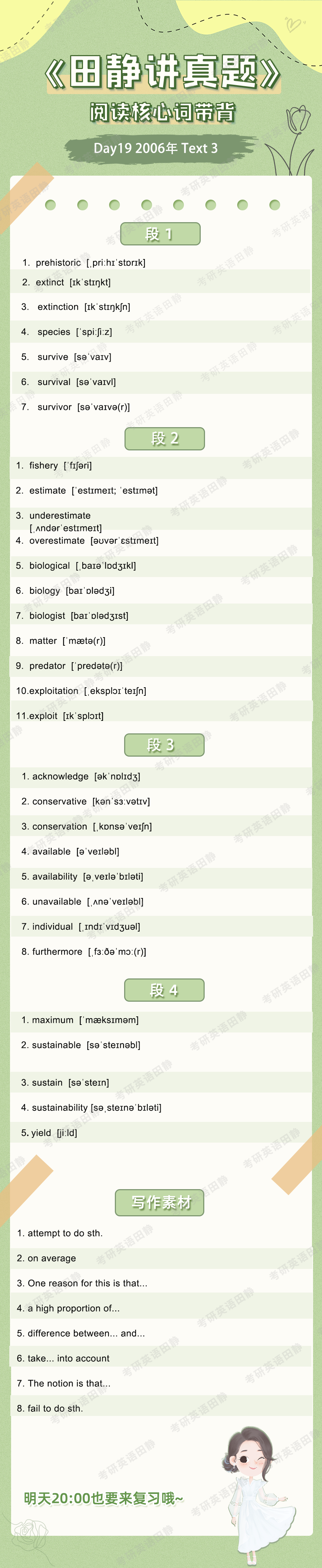 Aloha,大家好,我是大家的考研英语老师田静。核心词带背的第20天,6月的第5天,六一过完啦,五月天的演唱会也结束啦,时间正式进入到6字开头的月份啦,有些同学好像还没开始进入真题的学习,还记得我们要做什么吗?