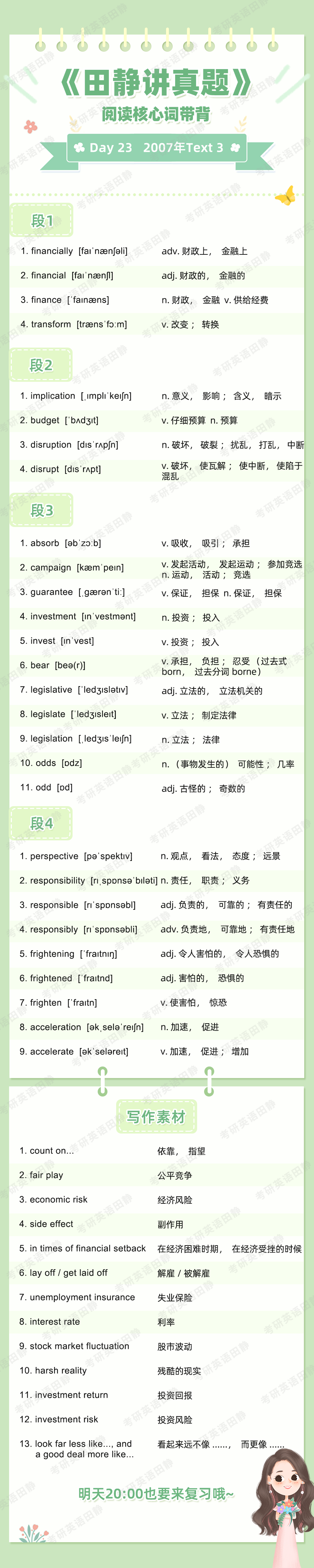 先复盘再学习,看看昨天的核心词带背都记住了吗,跟着静姐一起自测一下吧,没记住的单词记得标记出来📌,和今天新的单词一起背诵呀~