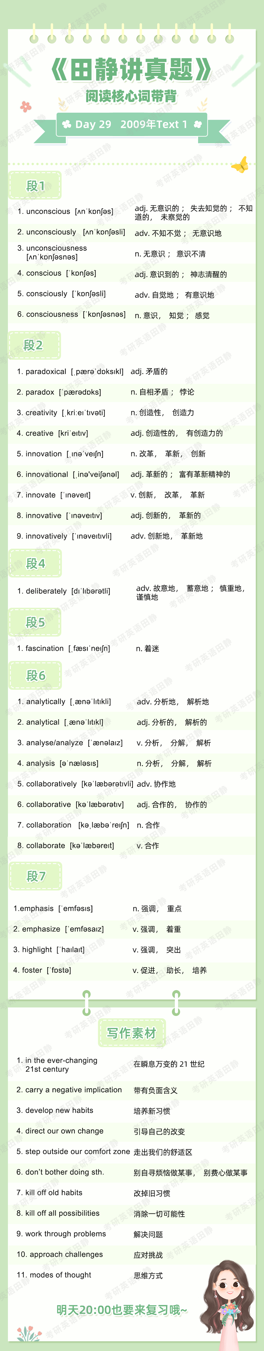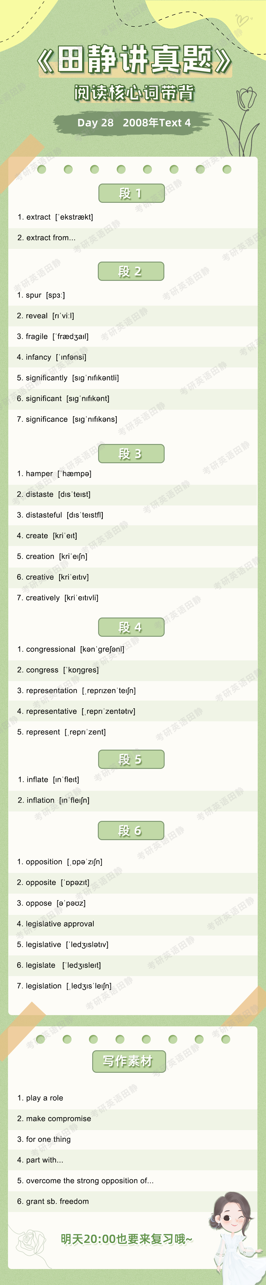 先复盘再学习,看看昨天的核心词带背都记住了吗,跟着静姐一起自测一下吧,没记住的单词记得标记出来📌,和今天新的单词一起背诵呀~