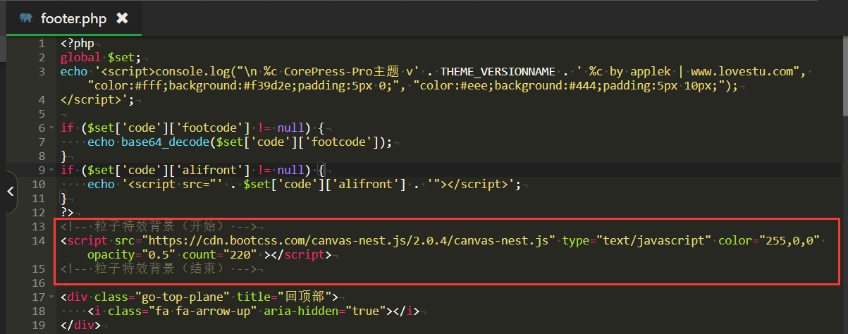 1. 登录宝塔面板 -> 进入“你的域名/wp-content/themes/主题名”目录 -> 将下面的代码插入“footer.php”中 -> 保存。