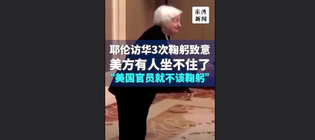 首先,我们要明白,鞠躬是一种普遍的礼仪,不仅在中国,在日本、韩国等亚洲国家也是如此。鞠躬表示尊重、感谢、道歉等情感,是一种文化传统。耶伦作为一位外国高官访问中国,遵循当地的礼节习惯,向中方鞠躬,并不意味着她在向中方示弱或屈服。相反,这反映了她的开放和包容的态度,也体现了她对中美关系的重视和尊重。