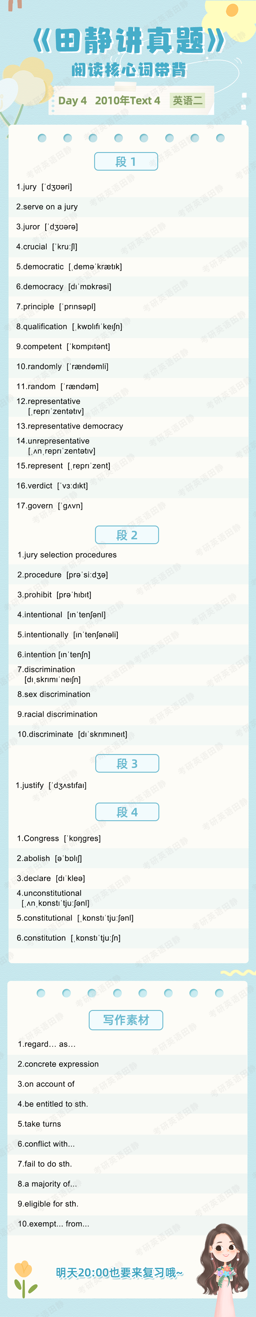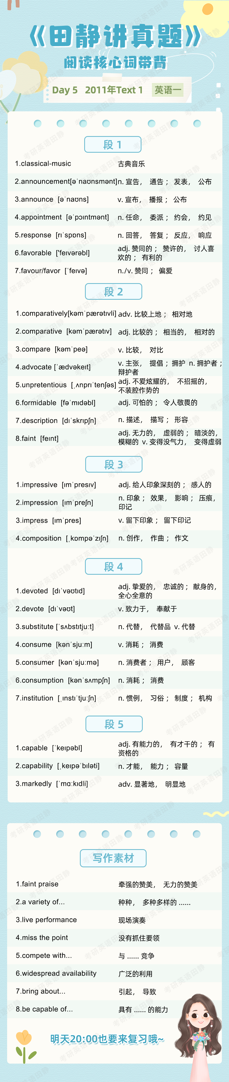 先复盘再学习,看看昨天的核心词带背都记住了吗,跟着静姐一起自测一下吧,没记住的单词记得标记出来📌,和今天新的单词一起背诵呀~