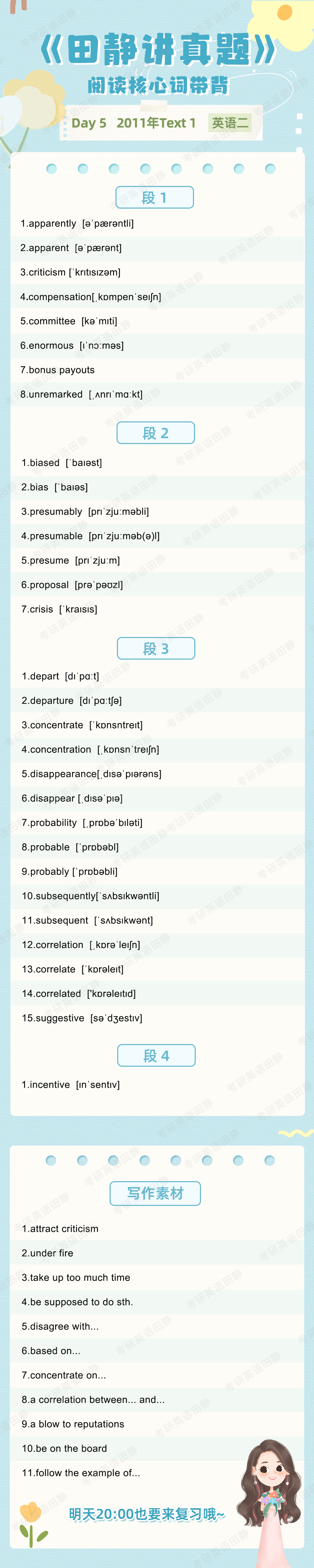 Aloha,大家好,我是大家的考研英语老师田静。核心词带背的第43天