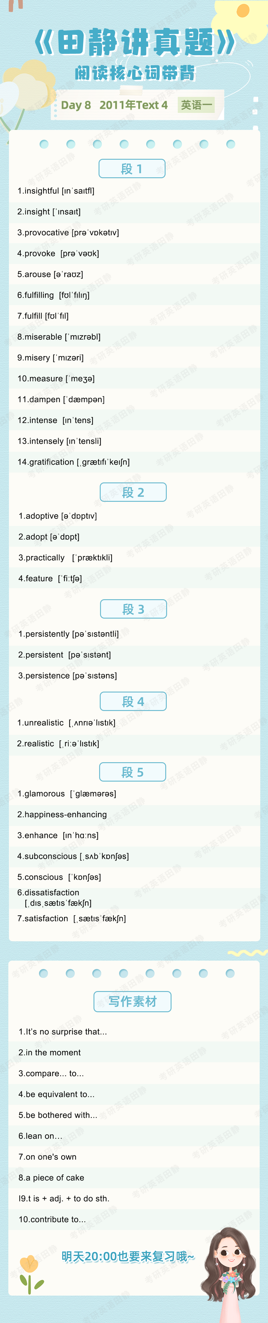 Aloha,大家好,我是大家的考研英语老师田静。核心词带背的第48天。
