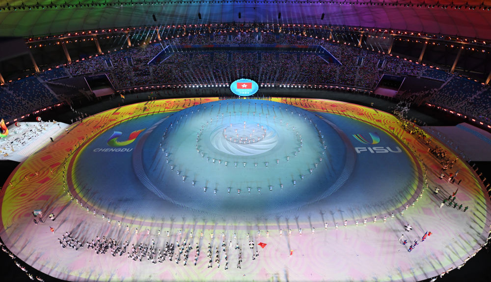 20时07分,运动员入场式开始,来自113个国家和地区的大学生体育代表团沿着蜀锦图案铺就的“锦绣之路”相继入场,受到全场观众的热情欢迎。东道主中国代表团最后入场,习近平起身挥手致意,全场一片欢腾,掌声欢呼声此起彼伏。中国代表团共700余人,其中参赛运动员411人,将参加本届大运会全部18个大项赛事。