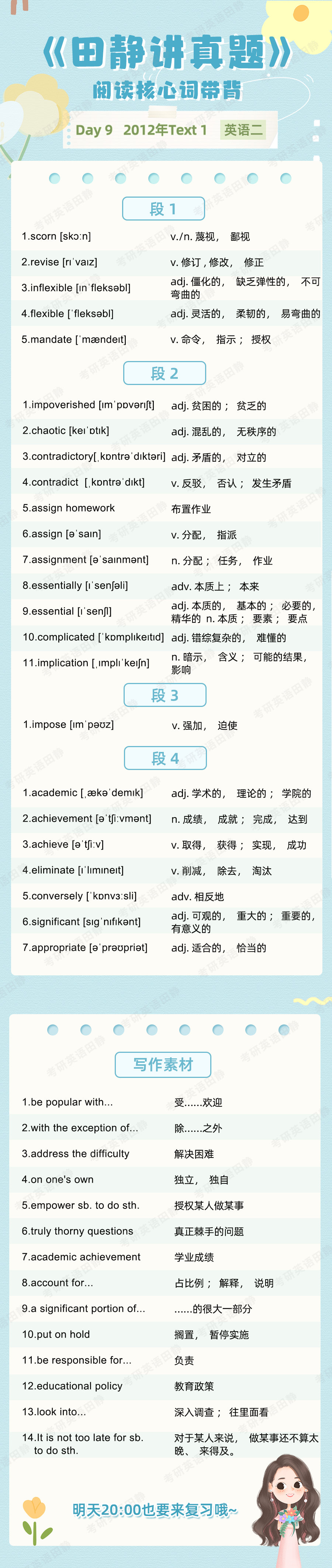 Aloha,大家好,我是大家的考研英语老师田静。核心词带背的第50天。