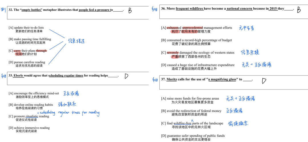 我的阅读带刷营给每篇阅读都录了一个半小时左右的复盘课,其中的重点之一就在于选项分析。