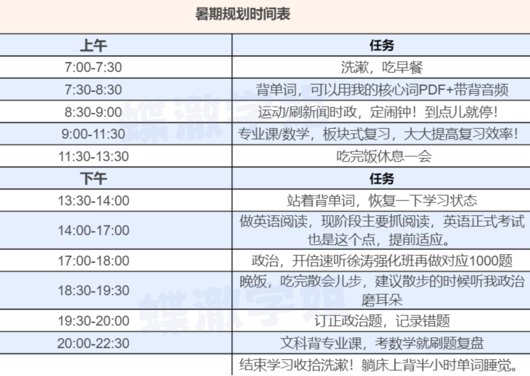 这个暑期时间规划表仅供大家参考,具体根据自己进度调整: