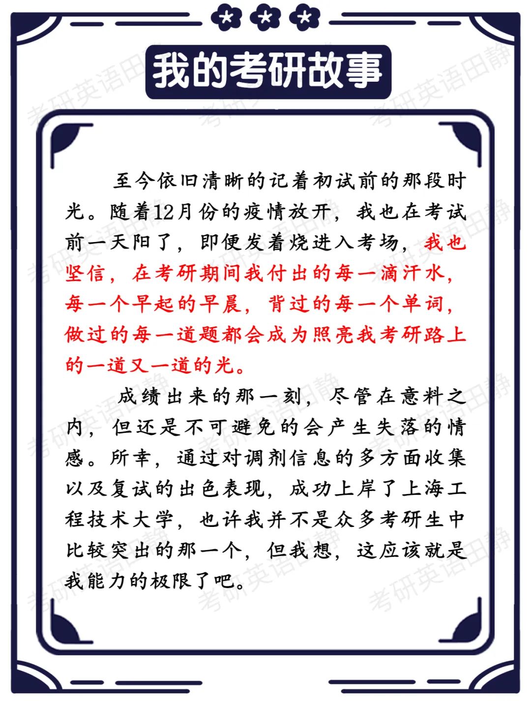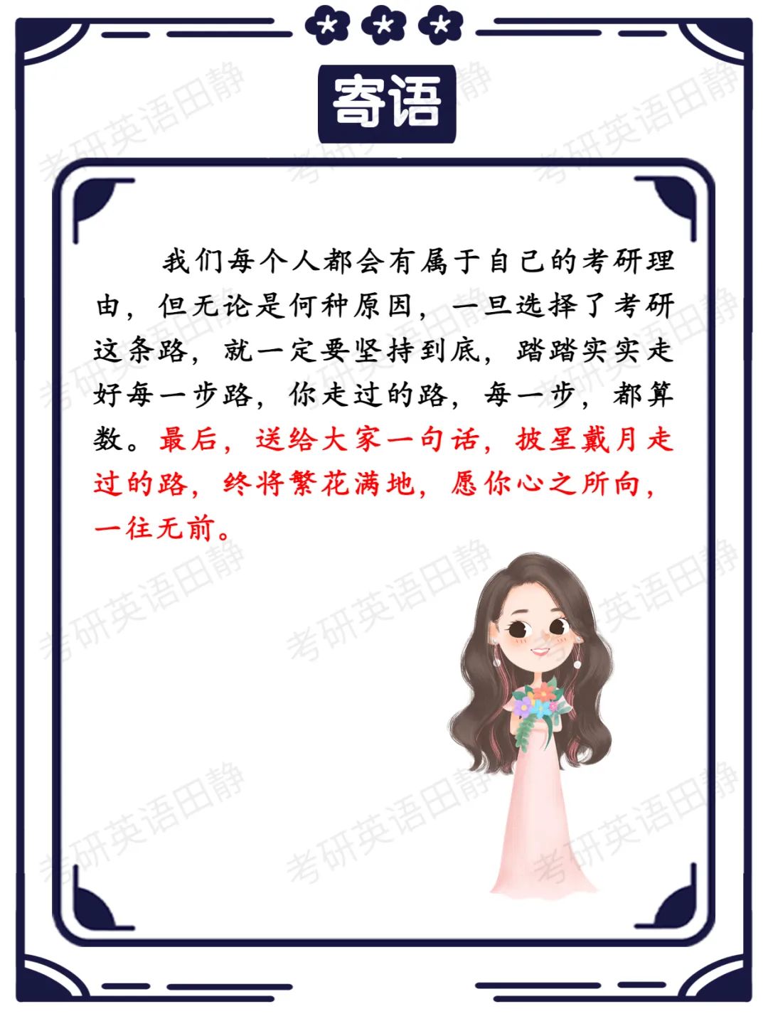 上岸寄语:披星戴月走过的路,终将繁花满地,愿你心之所向,一往无前。