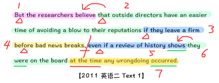 断开:通过标点逗号、连接词或词组that/if/before/even if/at the time、以及分析主谓来断开句子