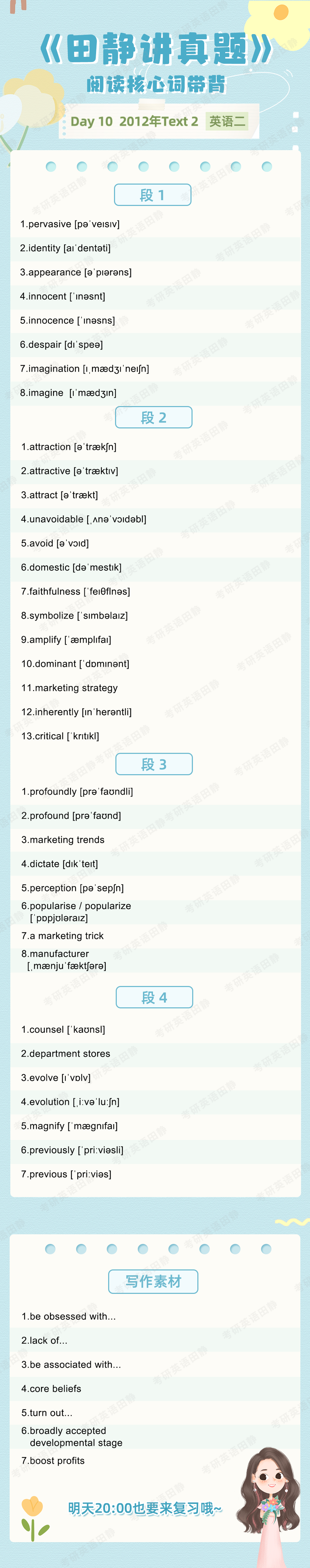 先复盘再学习,看看昨天的核心词带背都记住了吗,跟着静姐一起自测一下吧,没记住的单词记得标记出来📌,和今天新的单词一起背诵呀~