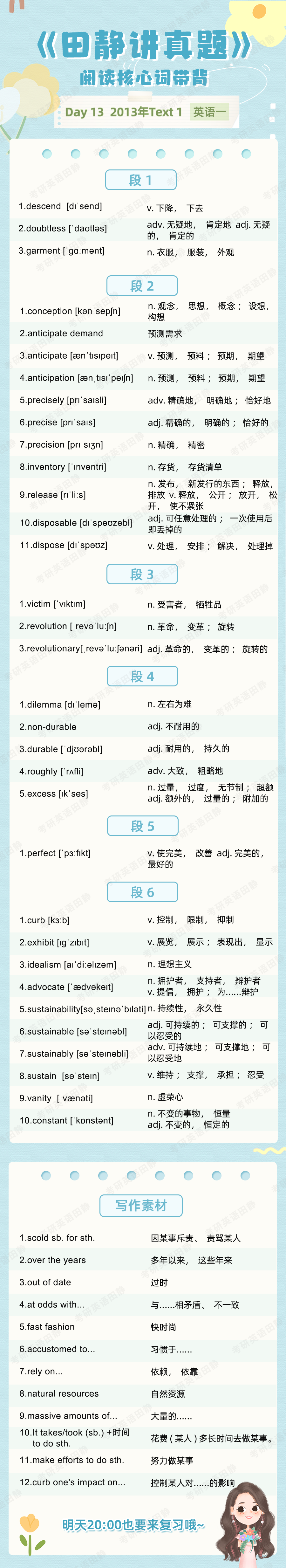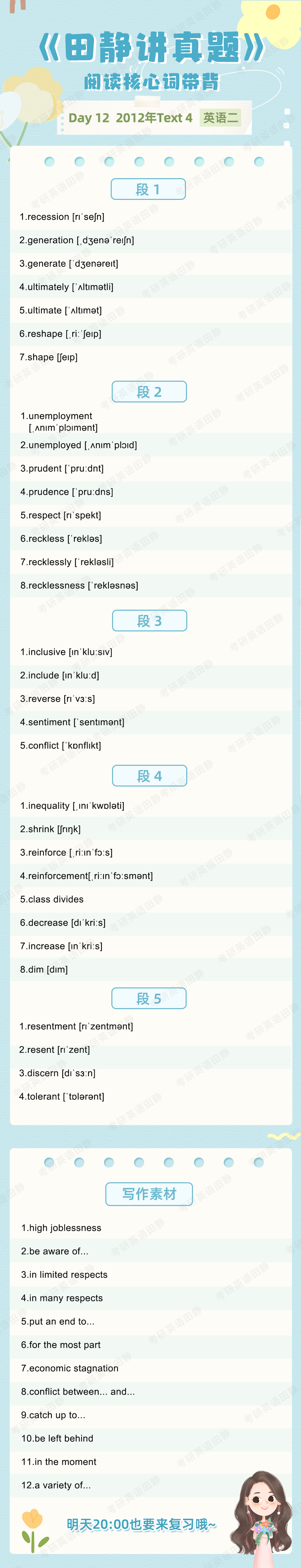 先复盘再学习,看看昨天的核心词带背都记住了吗,跟着静姐一起自测一下吧,没记住的单词记得标记出来📌,和今天新的单词一起背诵呀~