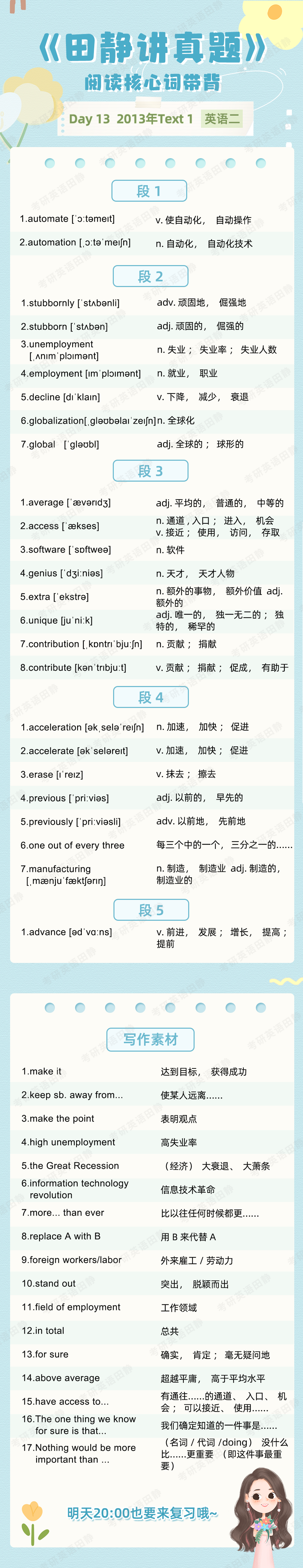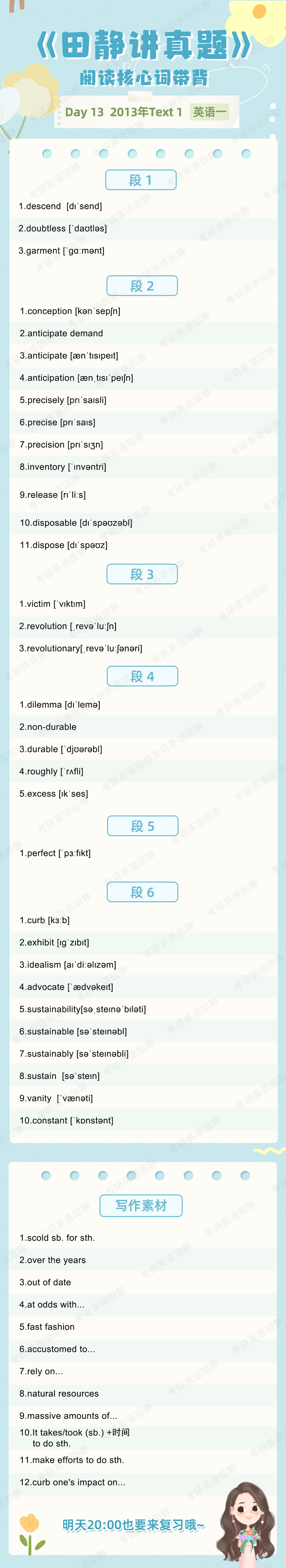 先复盘再学习,看看昨天的核心词带背都记住了吗,跟着静姐一起自测一下吧,没记住的单词记得标记出来📌,和今天新的单词一起背诵呀~