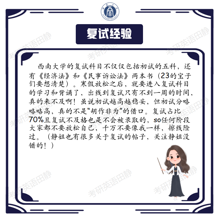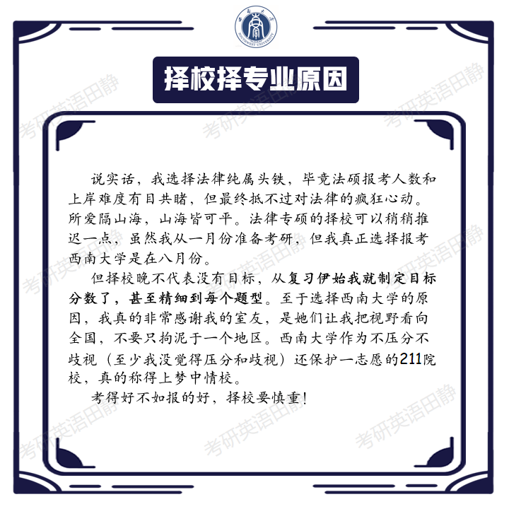 哈喽,各位同学早上好呀,今天分享的经验贴是西南大学,法律硕士(非法学)