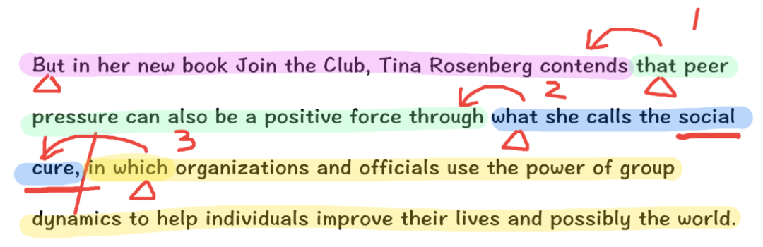 断开:通过标点逗号和连接词that/what/(in) which断开