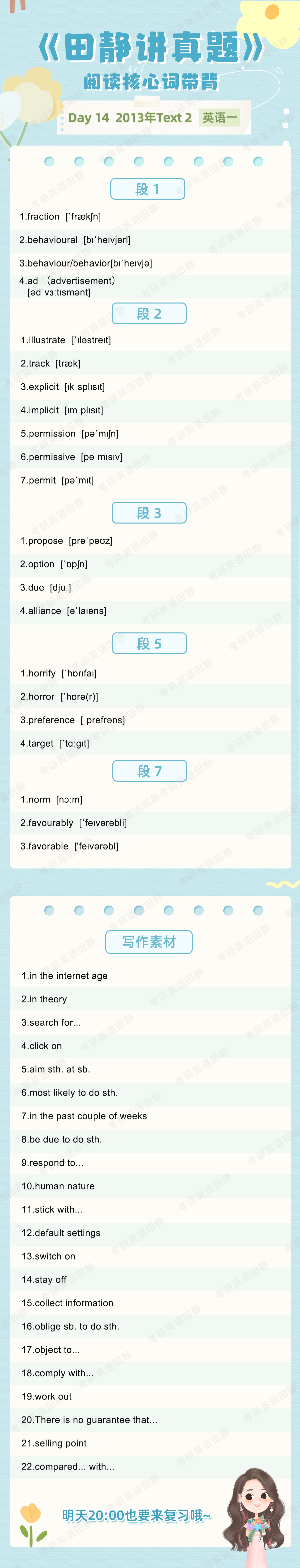 先复盘再学习,看看昨天的核心词带背都记住了吗,跟着静姐一起自测一下吧,没记住的单词记得标记出来📌,和今天新的单词一起背诵呀~
