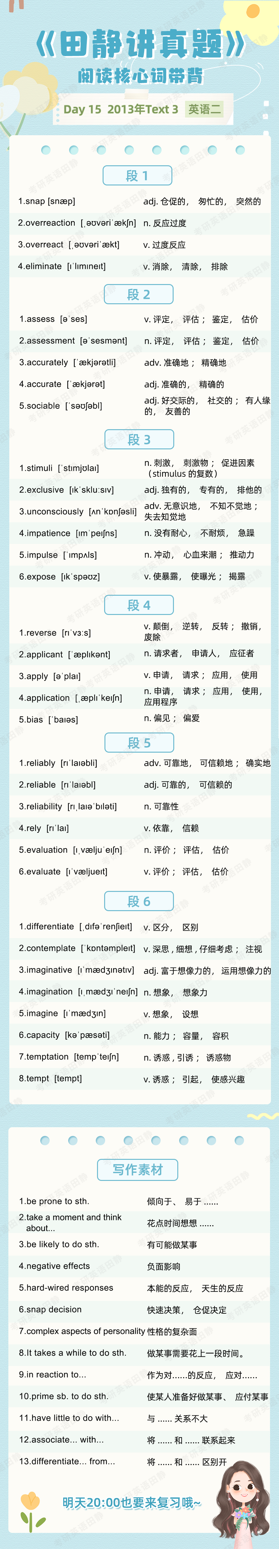 Aloha,大家好,我是大家的考研英语老师田静。核心词带背的第62天,7月已经过半了,大家英语学习进行的怎么样啦?