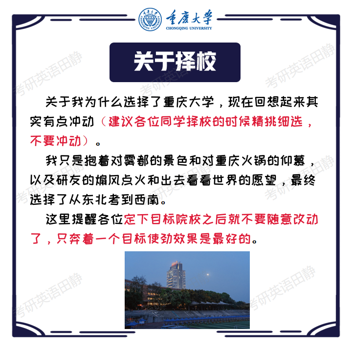 哈喽,各位同学早上好呀,今天分享的经验贴是重庆大学,新闻传播专业