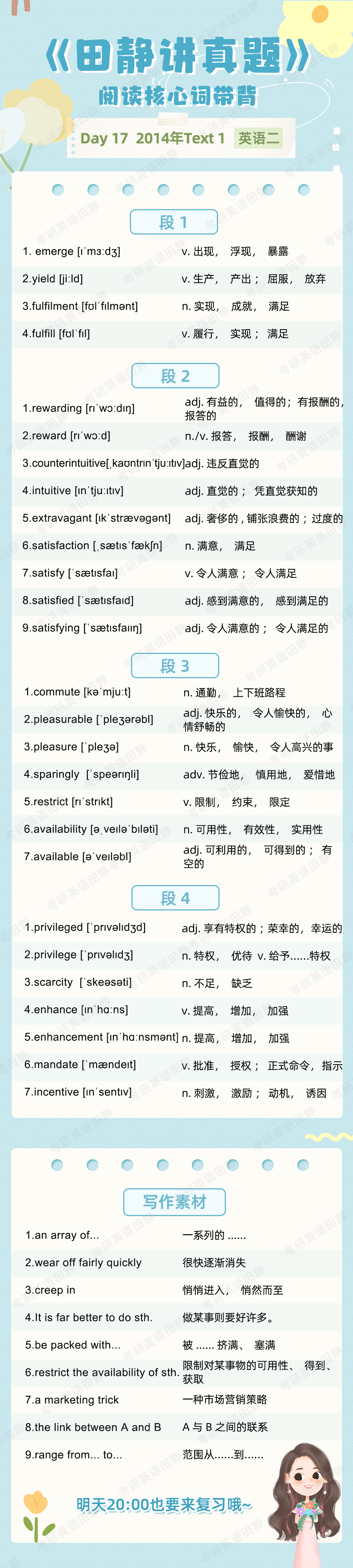 Aloha,大家好,我是大家的考研英语老师田静。核心词带背的第66天