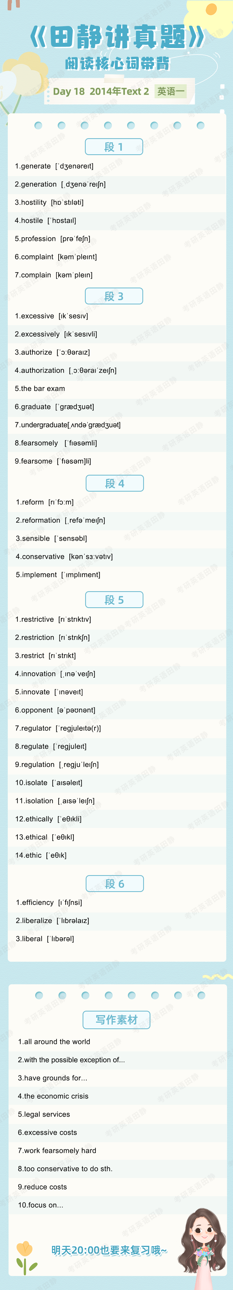 先复盘再学习,看看昨天的核心词带背都记住了吗,跟着静姐一起自测一下吧,没记住的单词记得标记出来📌,和今天新的单词一起背诵呀~
