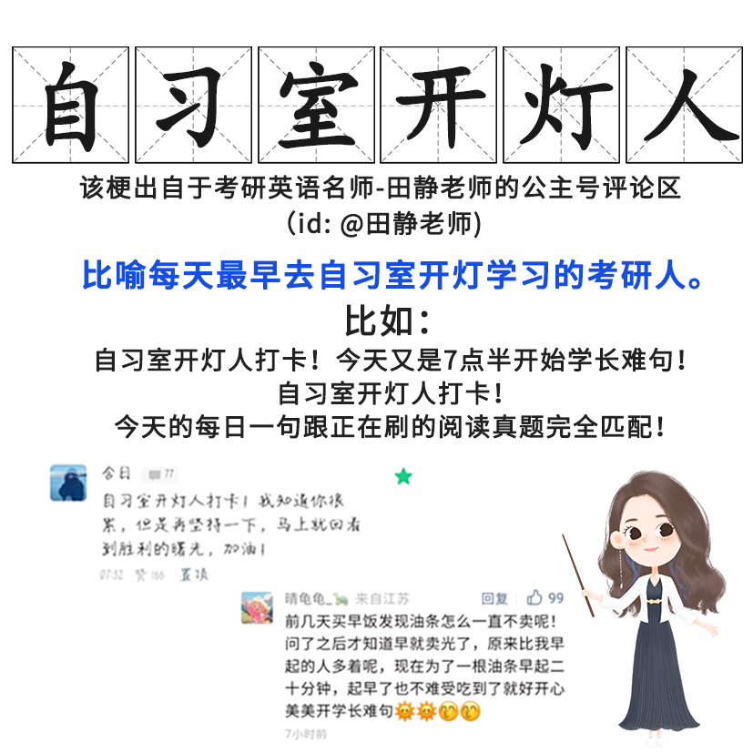 昨天好像很多田田圈都被【自习室开灯人】的称号激励到啦,纷纷表示要早睡早起争当开灯人,那就来领取属于你们的title吧。