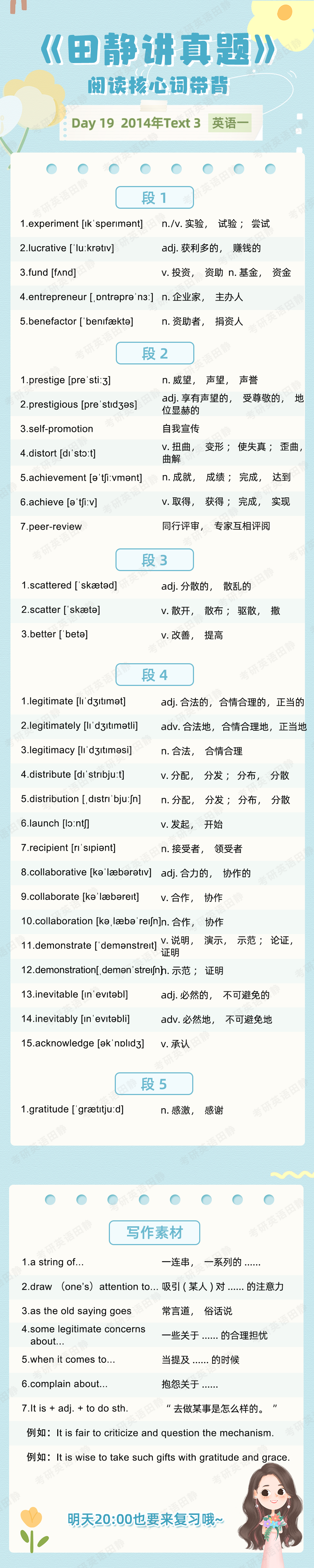 先复盘再学习,看看昨天的核心词带背都记住了吗,跟着静姐一起自测一下吧,没记住的单词记得标记出来📌,和今天新的单词一起背诵呀~