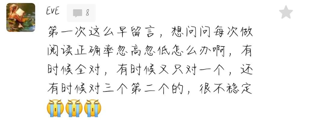 有些同学在评论区问静姐,阅读正确率忽高忽低怎么办: