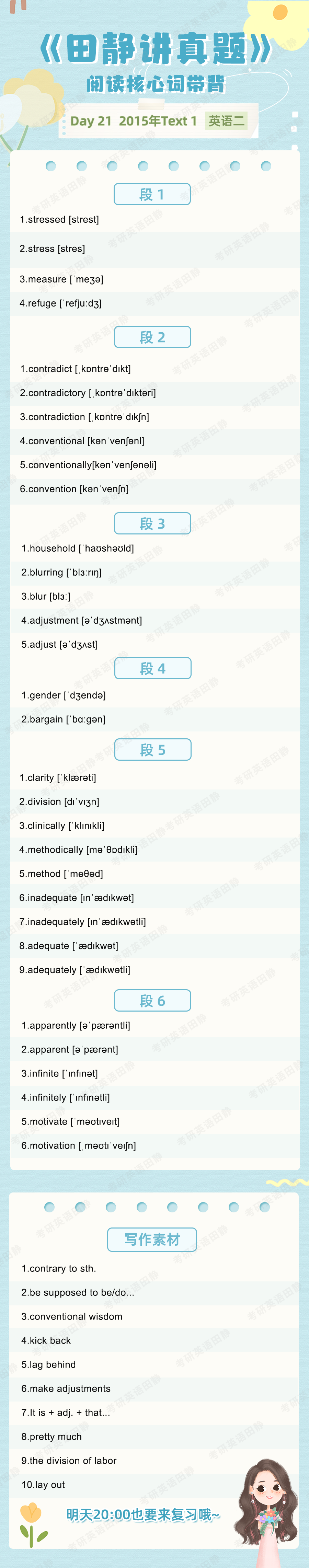 先复盘再学习,看看昨天的核心词带背都记住了吗,跟着静姐一起自测一下吧,没记住的单词记得标记出来📌,和今天新的单词一起背诵呀~