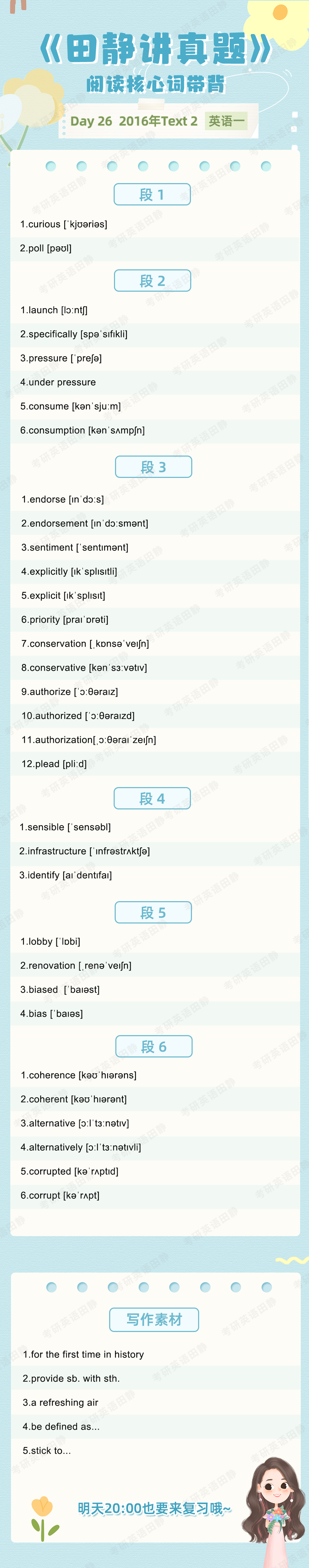 先复盘再学习,看看昨天的核心词带背都记住了吗,跟着静姐一起自测一下吧,没记住的单词记得标记出来📌,和今天新的单词一起背诵呀~