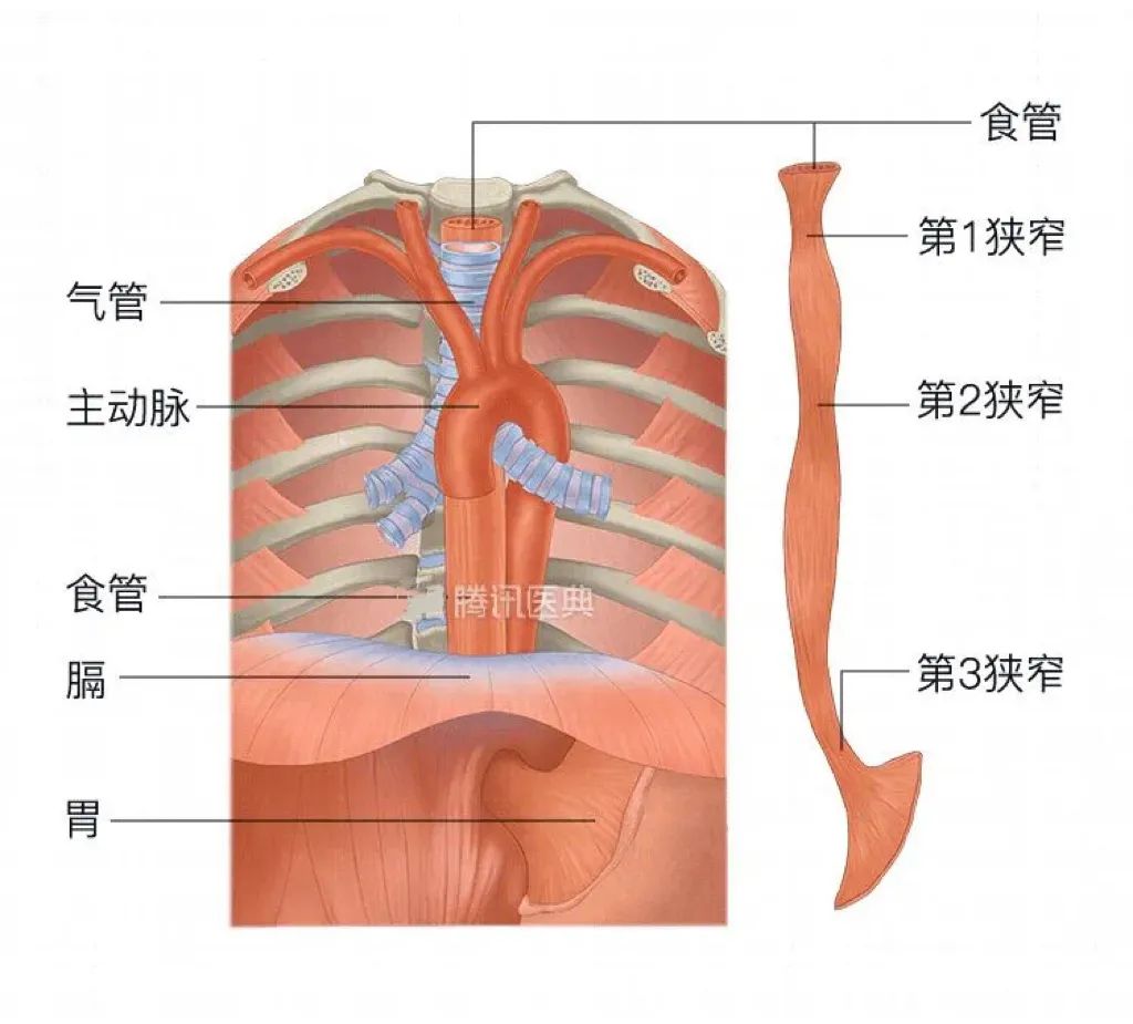 人体食管有三处狭窄:第一处是食道入口处;第二处在食道入口后7厘米左右,这里的食管外贴着主动脉弓;第三处则是食管与胃连接的地方。这三处狭窄,就是最易发生卡刺事故的地方。