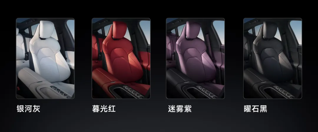 内饰也有4种颜色可选,银河灰、暮光红、迷雾紫和曜石黑,都非常优雅好看。