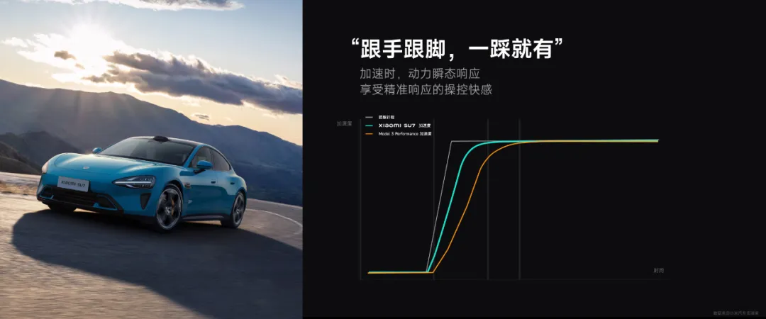 我们请了媒体朋友们试驾,大家非常惊讶,说:“小米SU7 的驾驶质感很高级,动力跟手跟脚,一踩就有。”