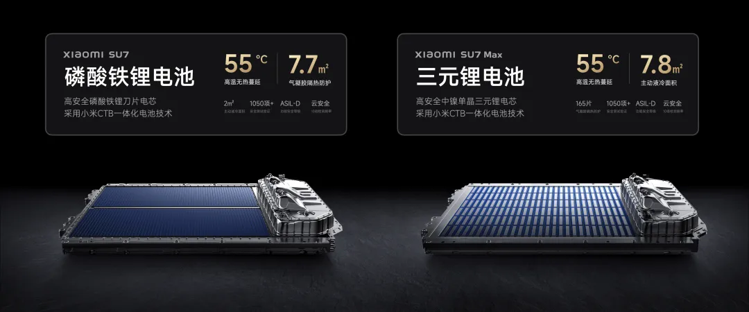电池安全也做到了全链路无死角,实现 55°C 高温下,即便水冷系统不工作,也能确保无明火、无热蔓延发生。小米 CTB 一体化电池技术,经过了包括碰撞、挤压、火烧等在内的 1050 项安全测试,测试项目数是国家标准的 20 倍。