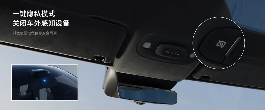 我们车内还有物理按键,一键进入隐私模式,关闭外部的激光雷达和摄像头,适合有保密要求的单位使用。