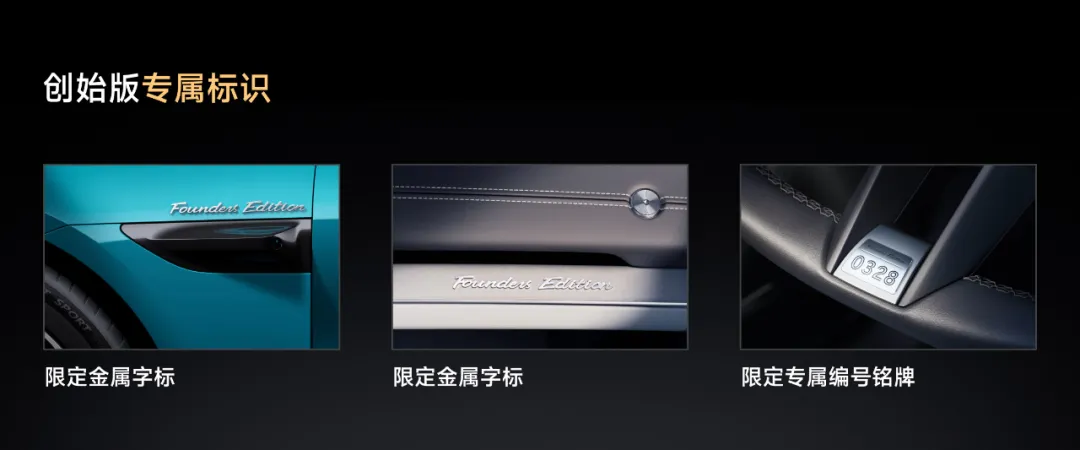 权益 1:专属标识,在前翼子板会有专属的限定金属字标;副驾前方的内饰板上,也会有限定金属字标;方向盘上还会有限定专属编号铭牌,可以自由选择;专属礼盒,编号证书和雷军签名版蓝牙钥匙;购车礼物,赠送棒球帽、Nappa真皮的NFC钥匙卡套、U盘。